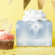 Delicate swirling patterns radiate symmetrically from a central point, creating a floral-like motif of a snowflake on a pastel blue background.