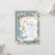Wonderland tea party invitation with cute Alice and tea set on a pretty blue and gold sparkle swirl background. This pretty pink rose, blue and gold Wonderland tea party invitation is easily customised for your event by simply adding your details in the font style and colour of your choice. This is a printed design with no real glitter.