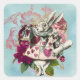 Square stickers with colourized version of Alice in Wonderland's White Rabbit as a member of the Queen of Hearts court. Added floral on distressed blue background. Perfect for Mad Hatter tea parties and other whimsical events.