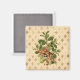 Vintage woodland botanical illustration of mushrooms, flowers and a variety of leaves on a creamy peach and gold harlequin background.
