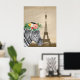 Vintage sepia tint background photo of the Eiffel Tower with overlay of beautiful watercolor zebra portrait with floral crown