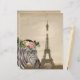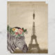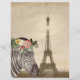 Vintage sepia tint background photo of the Eiffel Tower with overlay of beautiful watercolor zebra portrait with floral crown