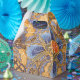 Gable style favour box with an image of fantastic blue, gold, orange, and brown floral batik. See the entire Bali Retreat Favour Box collection in the PARTY FAVORS section.