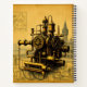 A diagram of a fantastic, strange engine creates the perfect notebook for anyone who loves steampunk and machinery. A background of aged parchment paper, and faded ink makes it perfect for home, school, or the workplace . . . especially if you work on machines!