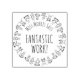 Personalised round rubber stamp with teacher's name and "fantastic work" praise printed on it . This cute personalised stamp for teachers is decorated with an joyful and happy children illustration. It's personalised with two segments of custom text, a smaller one for teacher's name and a larger print dedicated to a positive and encouraging phrase. Customise it with your name and if you wish a different phrase as well. Happy teaching!