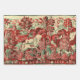 FANTASY ANIMALS,HORSES,WOODLAND Red Blue Floral Wrapping Paper Sheet