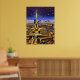 Poster in a semi-abstract ariel view of Paris, brightly lit, under a dark blue starry sky