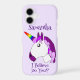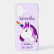 Fantasy art design of a unicorn with a purple mane and multi coloured horn. Do you believe in unicorns then this is for you. This mobile phone case is a must for anyone that loves the idea of unicorns and you can personalise it with a name or any other text. Should you require any help with the personalisation or would like some different colours on the unicorn then message us through the link below.