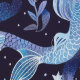 Blue and white fantasy mermaid pattern. Elegant, vintage feel nature inspired design. Removable peel and stick wallpaper is perfect for apartments, rentals, and short term housing. Peel and stick wallpaper lets you upgrade your small space home decor and personalise your rental with your unique design aesthetic. No more boring white boxes!