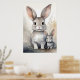 Poster of two adorable rabbits, one large and one small, sitting side by side with joyful expressions amidst a soft, natural background. The gentle colours and delicate foliage around them create a serene and heartwarming scene.