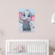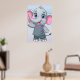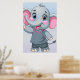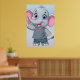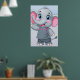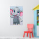 Poster of a cute cartoon elephant with large blue eyes and rosy cheeks is waving cheerfully.