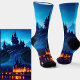 A Fantasy Castle with Blue Sky and Lights - - see more great sock designs in my store.