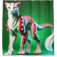 This shower curtain has a fantasy cat on it.