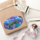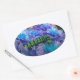 Pretty plump caterpillar on some fantasy flowers of periwinkle purple and turquoise blue shimmering mums.
