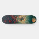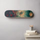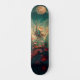 Fantasy cosmic art skateboard. An illustration of A whimsical steampunk style machine with floating eyes and tentacles, carrying an oversized coin on its back amidst surreal flowers in the style of detailed character design, colourful fantasy realism, dreamlike illustrations, surreal, whimsy. The background is an otherworldly landscape with floating islands and ethereal creatures