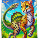 This shower curtain has a fantasy creature on it.