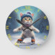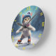 Fantasy Cute Cat Figure Skating. Round Clock