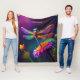 Fantasy Cute Dragonfly With Flower Fleece Blanket