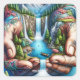Fantasy Cute Earth Hands Waterfall Square Sticker