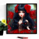 Portrait of a Cute Red Fairy Princess in re black and gold dress and beautiful red wings surrounded with red flowers. Original art by Gifts_AtTheCorner ©2023.