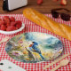 Fantasy Cute Vivid Bird Watercolor Landscape Paper Plate