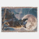 Fantasy Cute Wolf Howling To Moon Throw Blanket