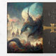 Fantasy fairytale style wedding invitation done in an old leather book looking tri fold invitation. Menacing looking dragons and a castle, decorate the inside of the invitation, with pages done like old antique letters. Personalise all the text fields for your special wedding announcement.