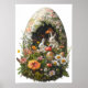 Great Easter Poster with a big easter egg and cute animals like an easter bunny or rabbit. Magical Fantasy Forest Floral Art with flowers and adorable animals. Happy Easter.