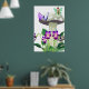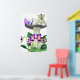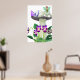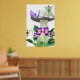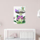 Poster of a small fairy with green wings sitting atop a large, spotted mushroom, accompanied by a purple butterfly. Below, vibrant purple flowers and lush green leaves add colour to the whimsical scene.