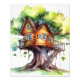 At the heart of the poster stands a majestic tree with sprawling branches that form a cosy and intricately designed tree house. The tree house is adorned with delicate details, from tiny windows framed by colourful flowers to a whimsical doorway that beckons you to enter.