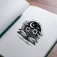 Elegant ex libris book stamp featuring a Vintage Fantasy book bloom design, perfect for book lovers, and classic script fonts. Personalise this beautiful rubber stamp with your name.