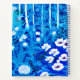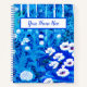 Journal in a semi-abstract illustration of a fantasy forest with flowers, foliage, trees and birds, in shades of cobalt blue and white, with personalised name