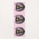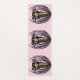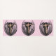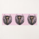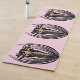This yoga mat is pink with three fantasy Goddess women with long black hair standing unclothed in an abstract black flower pod.
