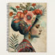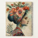 Planner has an image on front and back of a lady and flowers. AI assisted graphic purchased with commercial use. Artwork: RavenPrintableDesign