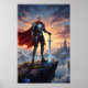 A heroic fantasy knight stands at the edge of a floating realm, sword glowing with power. Epic artwork for gamers, fantasy lovers, and medieval adventure decor.