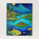 Fun and funky puzzle features magical mountain lake and fish art print | AI created surreal fantasy digital art.