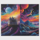 Fantasy landscape with ship and planets in space 3d illustration, Stellar Odyssey a Psychedelic Voyage through Space