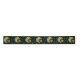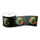 This roll of ribbon is black with green dots and a fantasy lizard holding a leaf on a branch. He is done in vibrant colours of blue, orange, yellow and green.