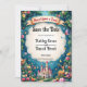 Enchant your guests with this woodland fairytale wedding save-the-date, featuring a whimsical castle, forest animals, and vibrant florals. With a charming "Once Upon a Time" banner and magical details, it's perfect for a romantic, storybook celebration.