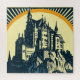 Look no further than this stunning design of a mediaeval castle, done in the style of a woodblock print. This illustration depicts a majestic castle perched atop a cliff. This design is sure to be a conversation starter and will add a touch of elegance and history to any room.