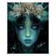 beautiful mermaid with shell crown and scale blue skin face in underwater.