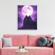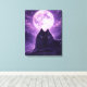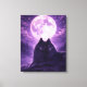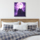 This 16x20 canvas features two wolves resting together under a luminous full moon, surrounded by a soft purple sky and distant forest silhouettes. The gentle glow and rich lavender tones create a calming, romantic atmosphere that draws the eye and anchors any space.
