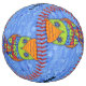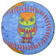 This custom softball is done in shades of blue with fantasy owls in neon colours of orange, green, and red with blue star shaped eyes.  Customise your text with the templates.