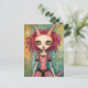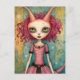 Fantasy Pink Cat Alien Woman Mixed Media Postcard
