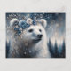 Celebrate the serene beauty of winter with this enchanting polar bear artwork postcard, f"eaturing a majestic polar bear adorned with an intricate blue floral crown. Surrounded by snowflakes and a tranquil winter wonderland backdrop, this fantasy animal illustration exudes elegance and charm, making it the perfect choice for art lovers and nature enthusiasts alike.