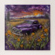 A beautiful purple retro vehicle parked in a mountain wildflower meadow AI generated art