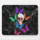 Chic elegant sophisticated girly, cute romantic fantasy skull and beautiful colourful multicolored butterflies, digitally collaged, on a black vintage Gothic Baroque background pattern, perfect for day of the dead or as a pretty goth gift for her. Visit the LEATHER_AND_LACE STORE for more alternative gothy gifts. This design was created from a vintage skull and some vintage colourful butterflies and a stylish black swirly floral damask background, which was made from a photograph of an old gate. This stylish day of the dead style design would make a great gift for her. Goth alternative girls would love this pretty romantic original design. Easily personalise this by adding your name or text to create a persona gift that she will love.