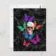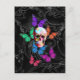 Chic elegant sophisticated girly, cute romantic fantasy skull and beautiful colourful multicolored butterflies, digitally collaged, on a black vintage Gothic Baroque background pattern, perfect for day of the dead or as a pretty goth gift for her. Visit the LEATHER_AND_LACE STORE for more alternative gothy gifts. This design was created from a vintage skull and some vintage colourful butterflies and a stylish black swirly floral damask background, which was made from a photograph of an old gate. This stylish day of the dead style design would make a great gift for her. Goth alternative girls would love this pretty romantic original design. Easily personalise this by adding your name or text to create a persona gift that she will love.