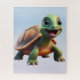 Jigsaw puzzle of a cute whimsical smiling turtle.
