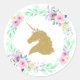 Fantasy Unicorn Floral Gold Classic Round Sticker